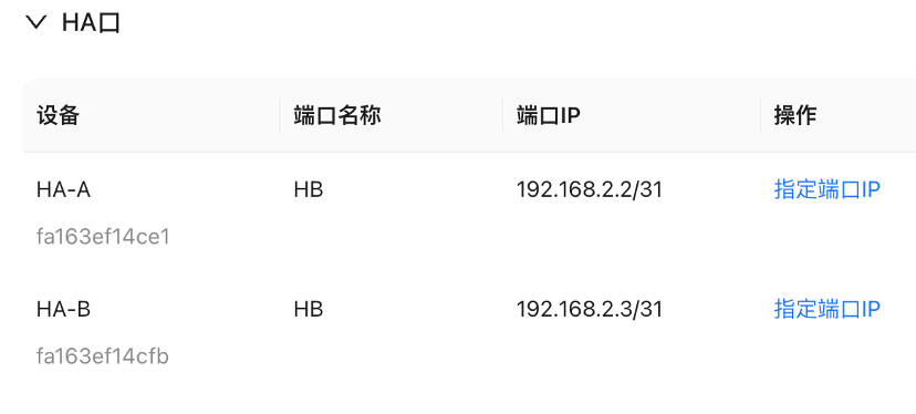 - 为设备ha口网卡添加辅助ip(主备设备ha口辅助ip需连续)