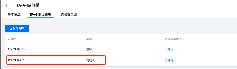 若设备ha口网卡主ip地址连续,可不用添加辅助ip,控制器配置ha口ip地址时指定ha口网卡主ip即可。
