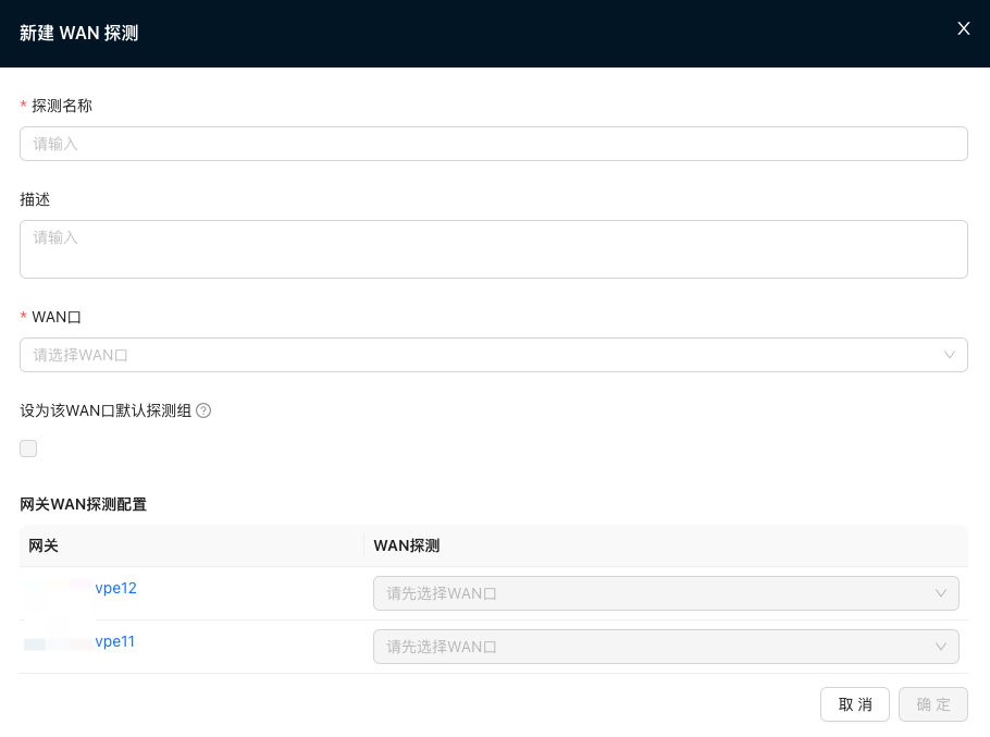 >『管理员』→『资源』→『高可用Nova网关』→『编辑高可用网关组』→『新建WAN探测』