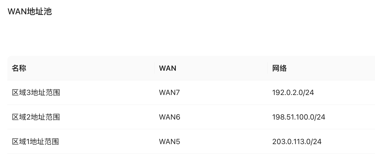 - 用于配置WAN口的地址范围