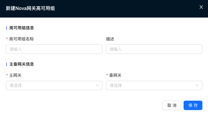 >『管理员』→『资源』→『Nova网关』→『Nova高可用组』→『新建』