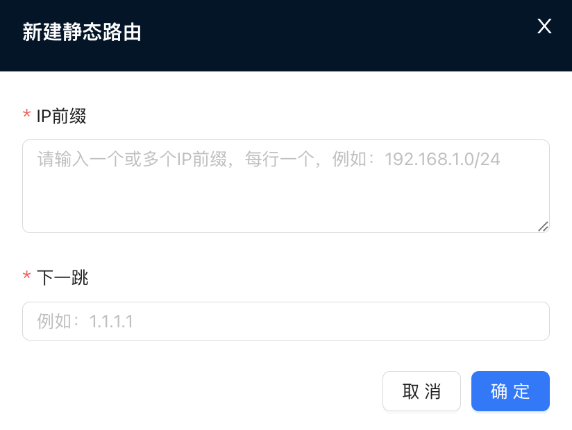 >『管理员』→『资源』→『编辑Nova网关』→『高级』→『静态路由』