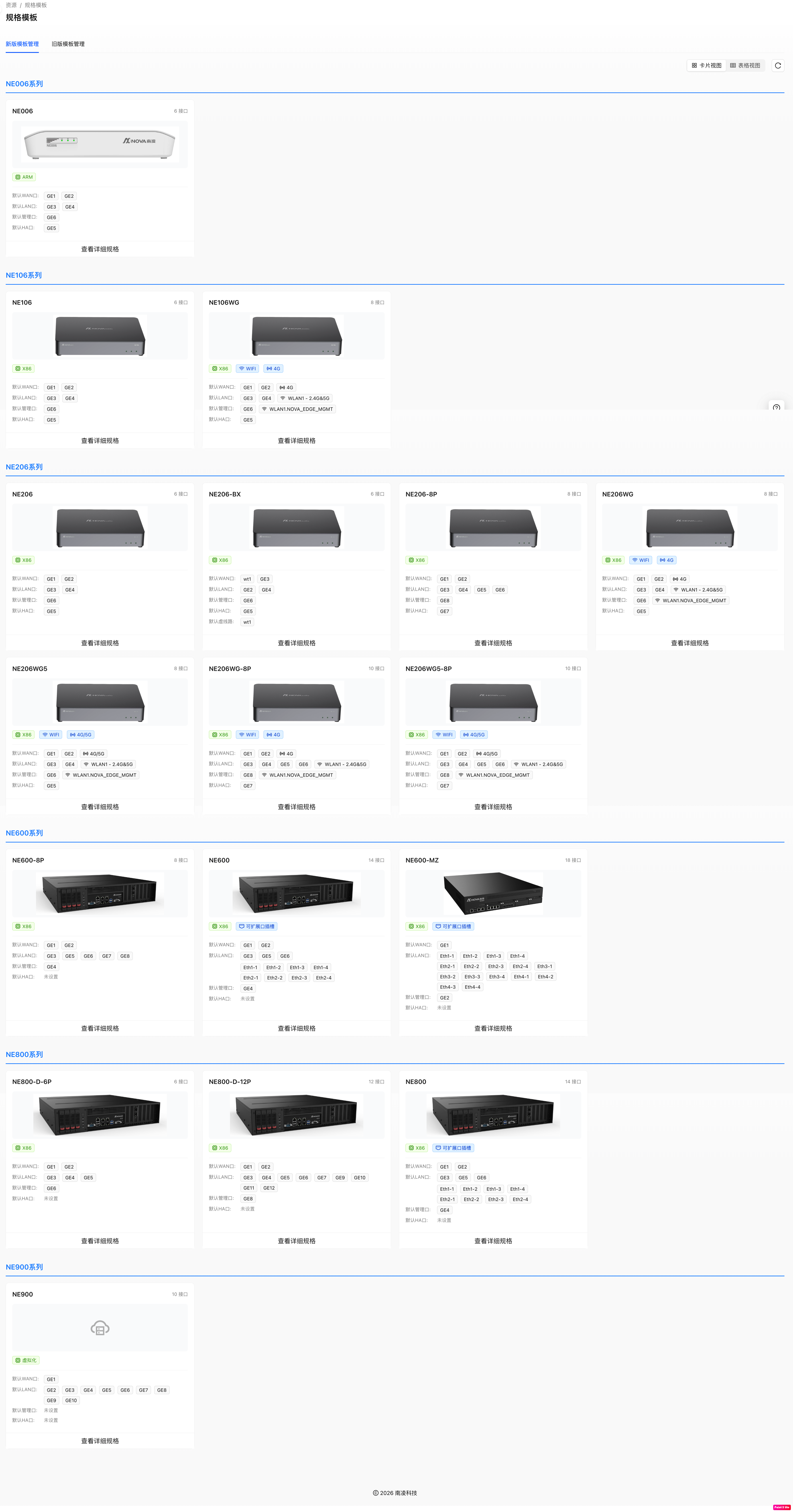 预定义的规格模版是根据硬件设备实际的端口数量和类型设定的,只可查看。
