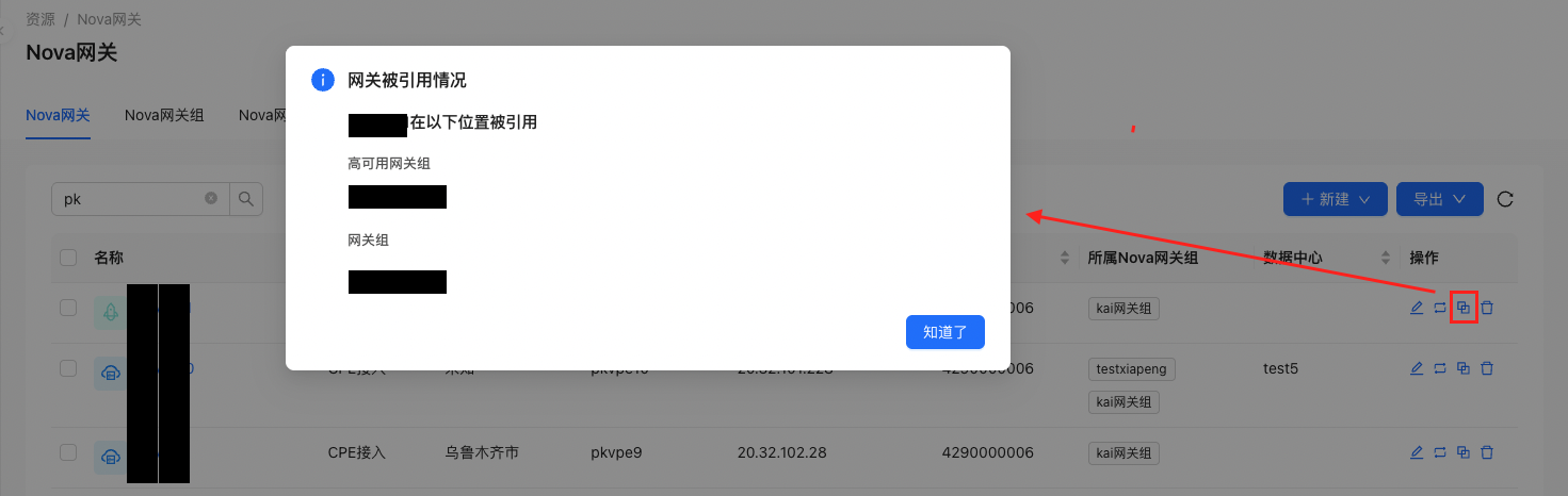 - 『资源』→『Nova网关组』→『分配网关』→【分配Nova网关】