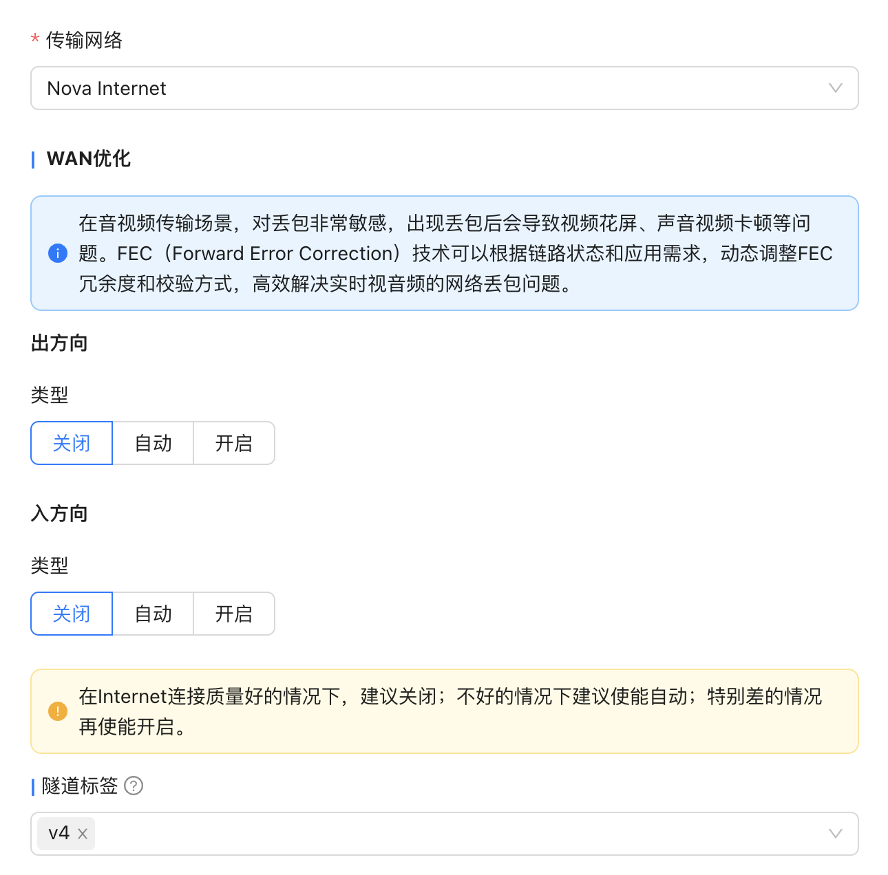 - 隧道标签:拥有相同标签的WAN会建立隧道,不填则匹配任意建立隧道