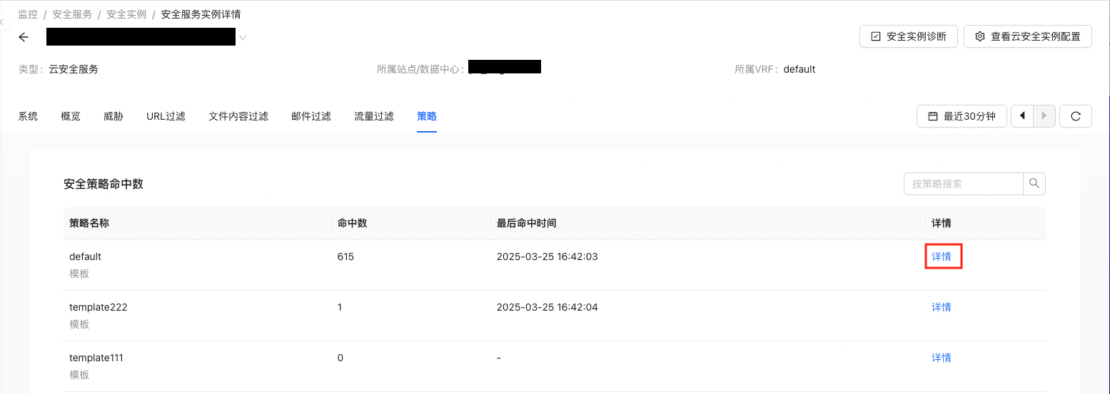 路径:安全服务-安全实例-详情-安全实例诊断-安全服务命中数